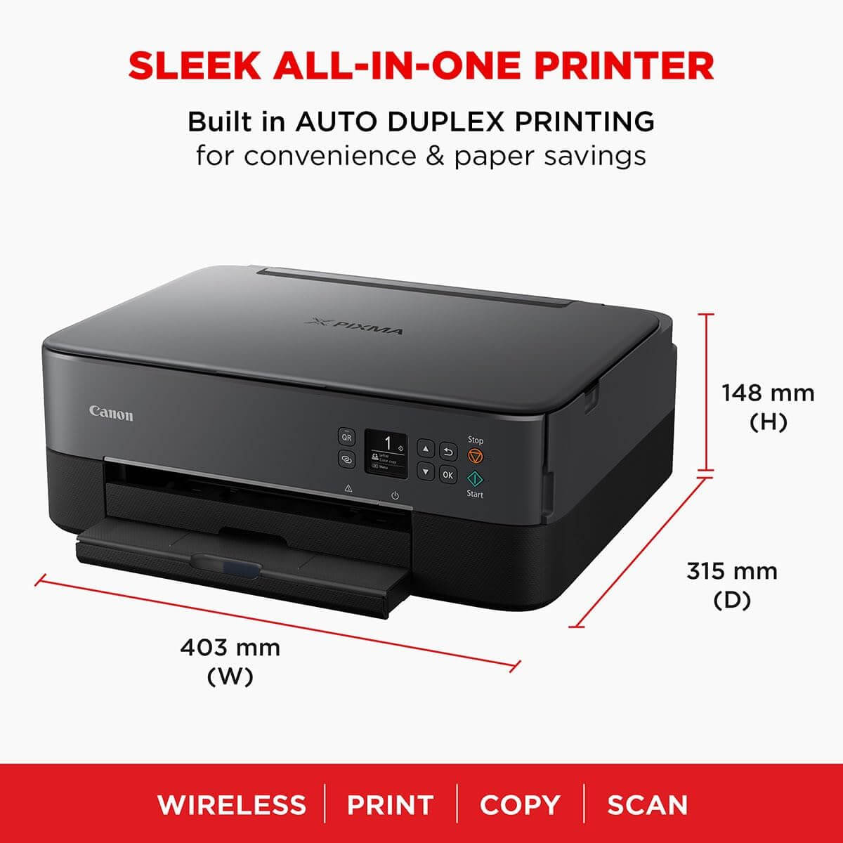 - MINIMALIST DESIGN – Print, copy, and scan with this 3-in-1 multifunctional printer with 2-tone colour scheme, and 1.44-inch OLED display; plus, 2-way paper feeder and auto-duplex printing for sharp documents and prisitine photos.
