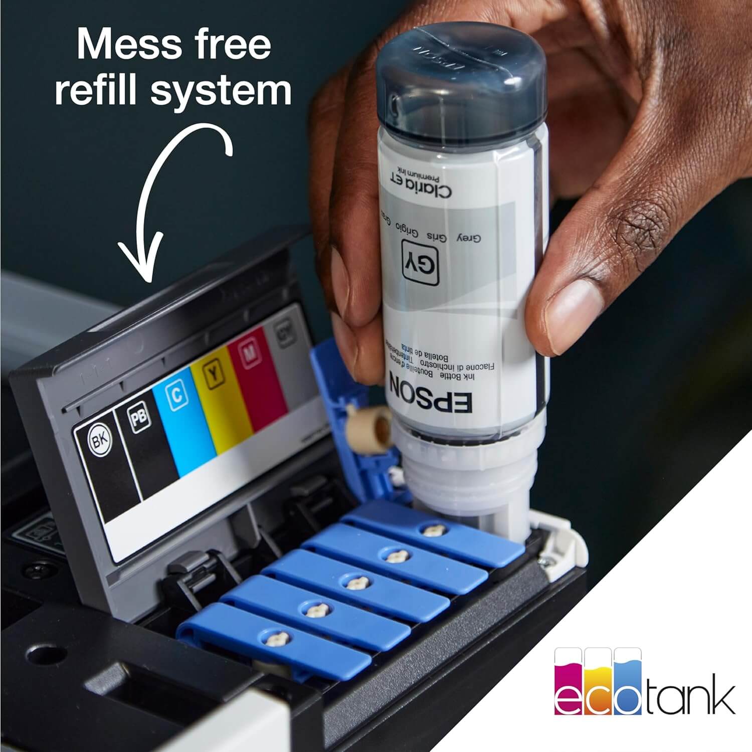 • SAVE TIME and MONEY – This economical printer allows you to print up to 2,300 high-quality photos with one set of ink bottles, The bottles and tanks are designed for ease of use, meaning no hassle or mess when it’s time to refill.